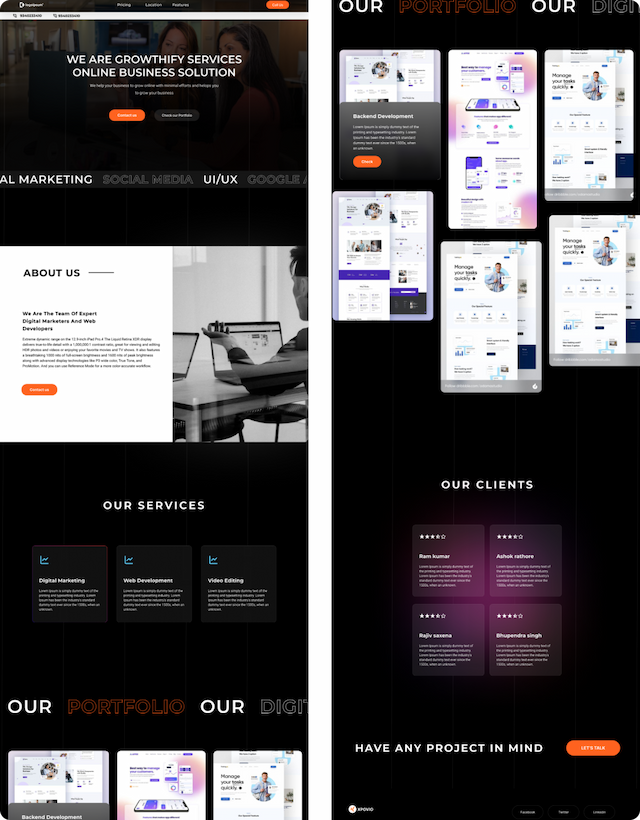 A clean and modern website designed to showcase digital marketing services. Features include an intuitive layout, service listings, and lead generation forms, providing a professional platform for agencies to connect with clients.